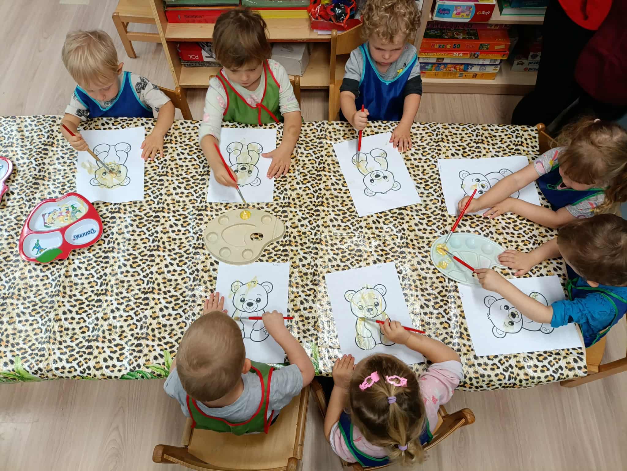 Za nami pierwszy miesiąc w przedszkolu! Ten czas był pełen nowych doświadczeń, emocji i wspólnych przygód. Dzieci poznały swoje panie, kolegów i koleżanki, a także zasady panujące w naszej grupie. Powoli uczą się samodzielności, współpracy oraz radzenia sobie z codziennymi obowiązkami przedszkolaka. W tym miesiącu maluszki uczestniczyły w zabawach plastycznych, muzycznych i ruchowych. Uczyły się prostych wierszyków i piosenek, bawiły się w zabawy integracyjne.