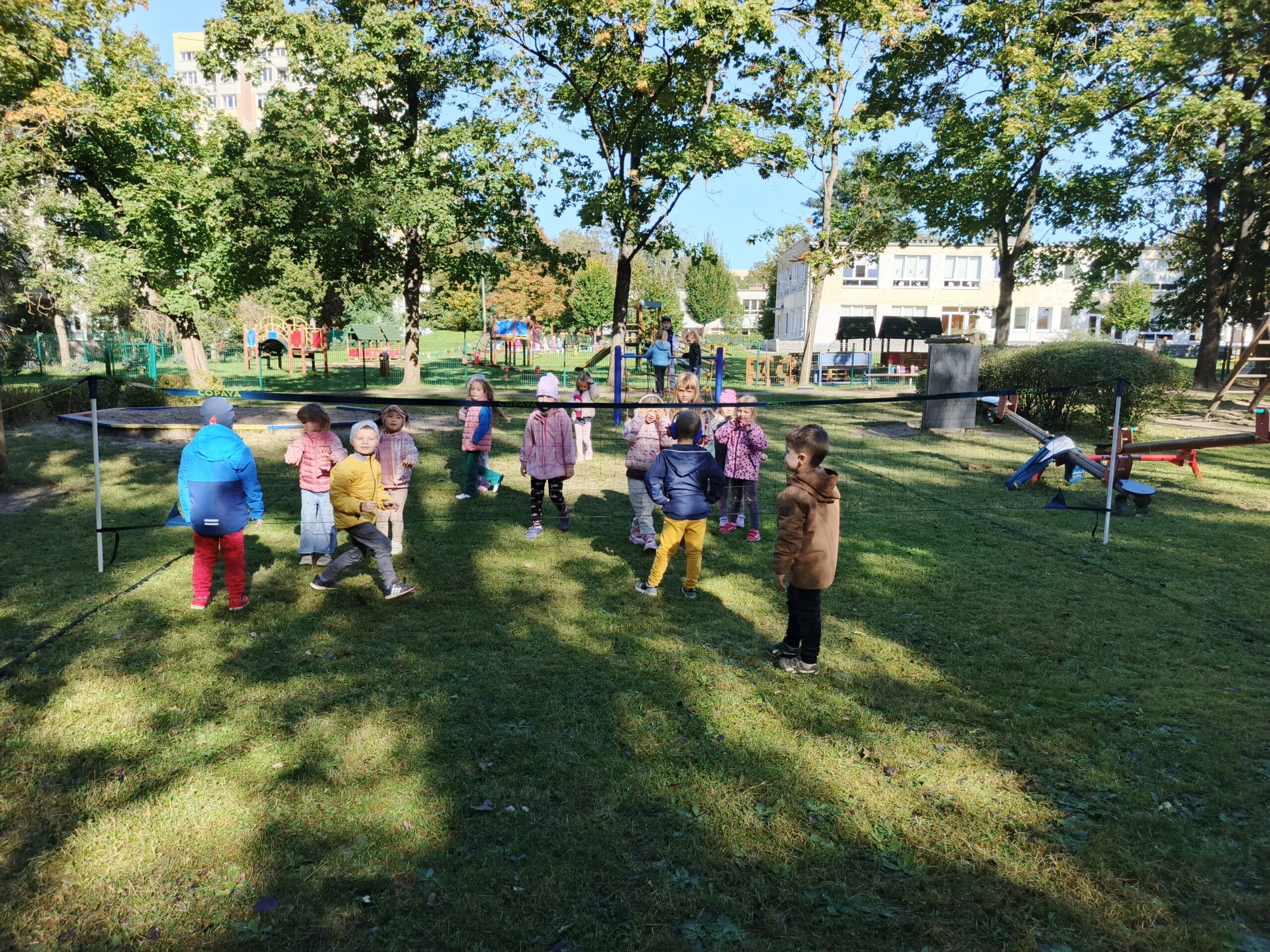 Każdego dnia spędzamy dużo czasu na świeżym powietrzu! Biegamy, skaczemy, gramy w piłkę i bawimy się na placu zabaw. Dzięki wspólnym zabawom rozwijamy sprawność, uczymy się współpracy i czerpiemy radość z ruchu. Aktywność na dworze to nasz ulubiony sposób na wesoły dzień!