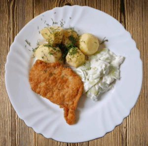 | Obiad | Kotlecik schabowy. /1,3,7/ Ziemniaki z koperkiem. Mizeria na jogurcie naturalnym. /7/ Kompot wieloowocowy. |