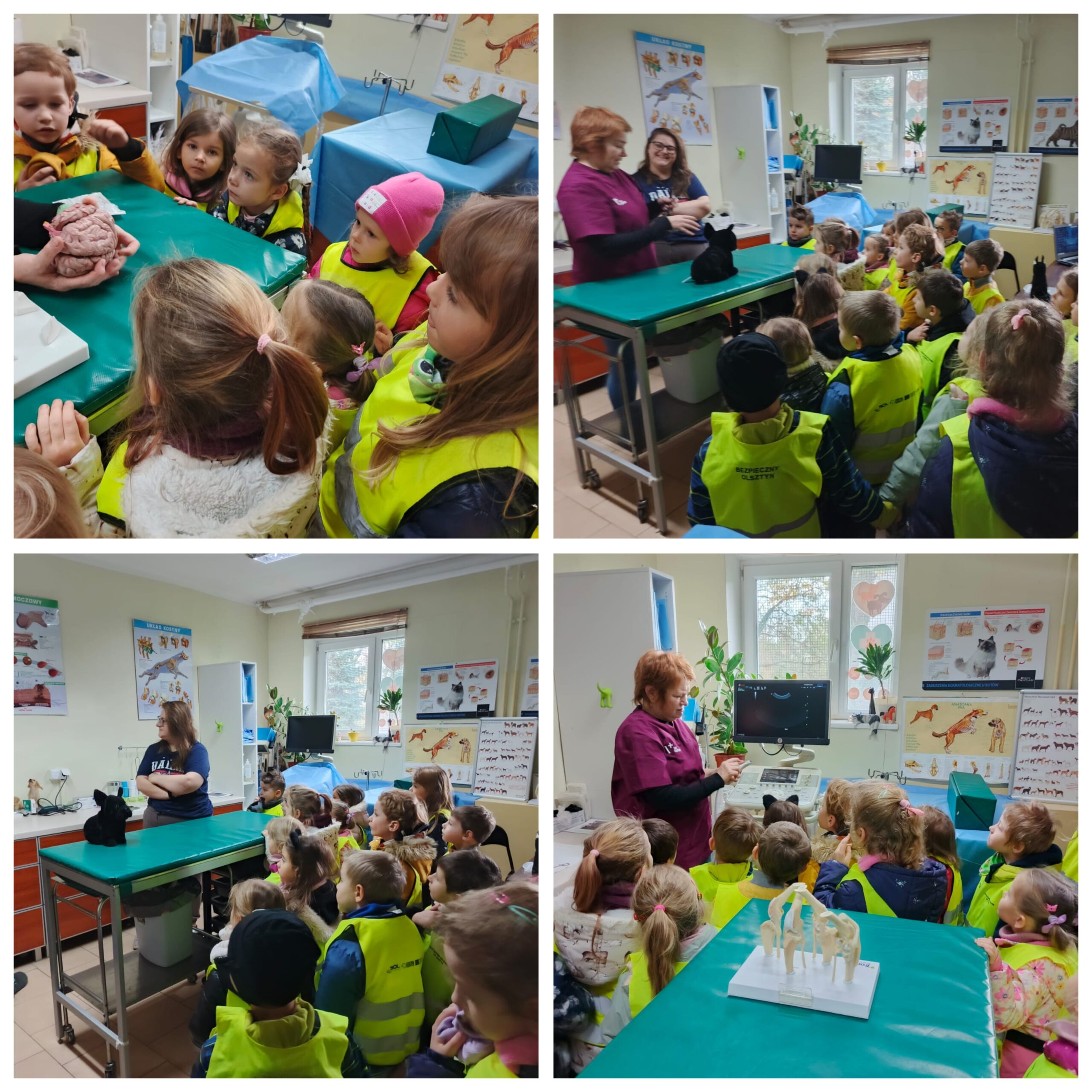 Kolaż ze zdjęciami plastelinowych zwierząt Kolaż ze zdjęciami dzieci w gabinecie weterynaryjnym