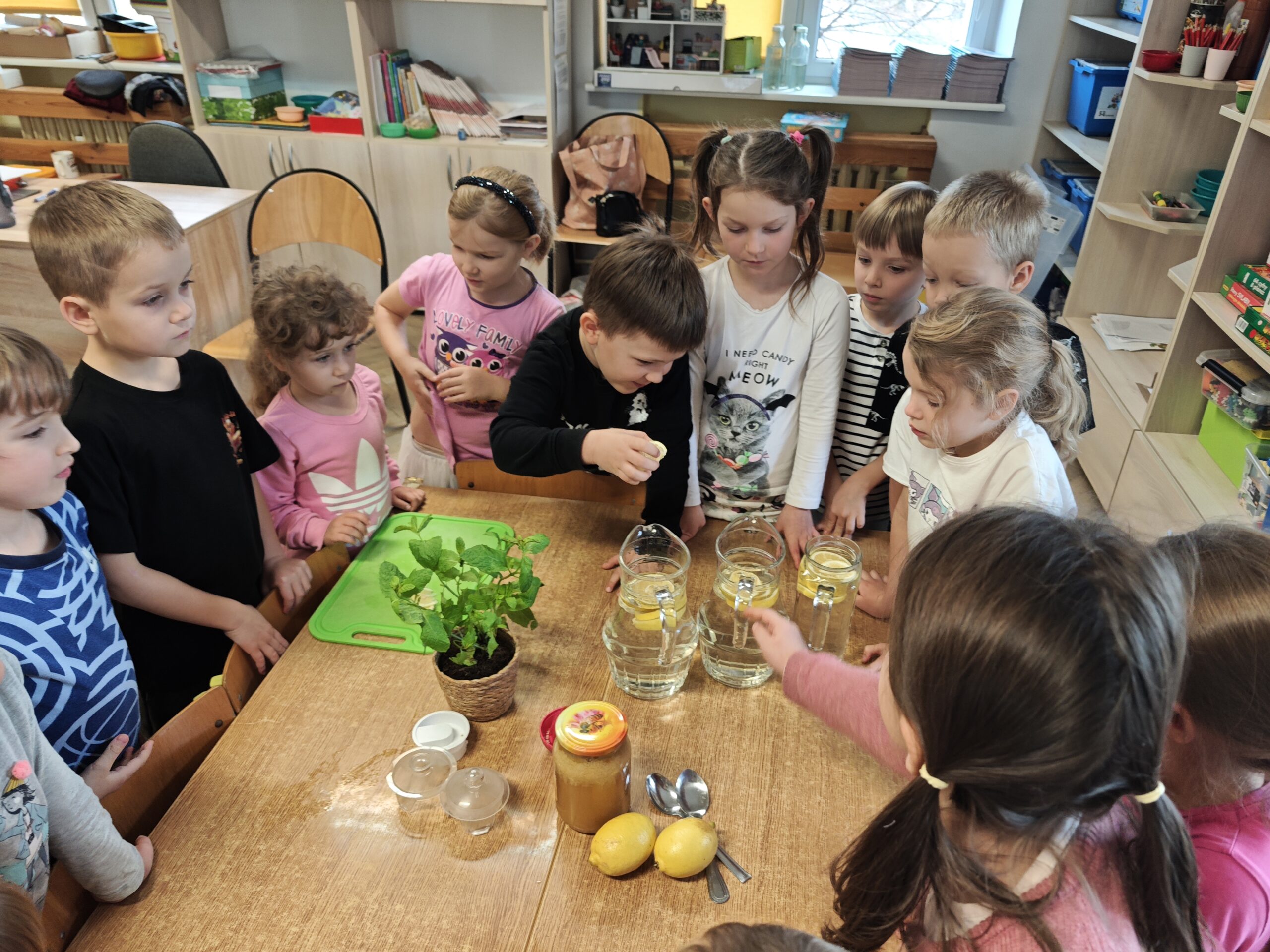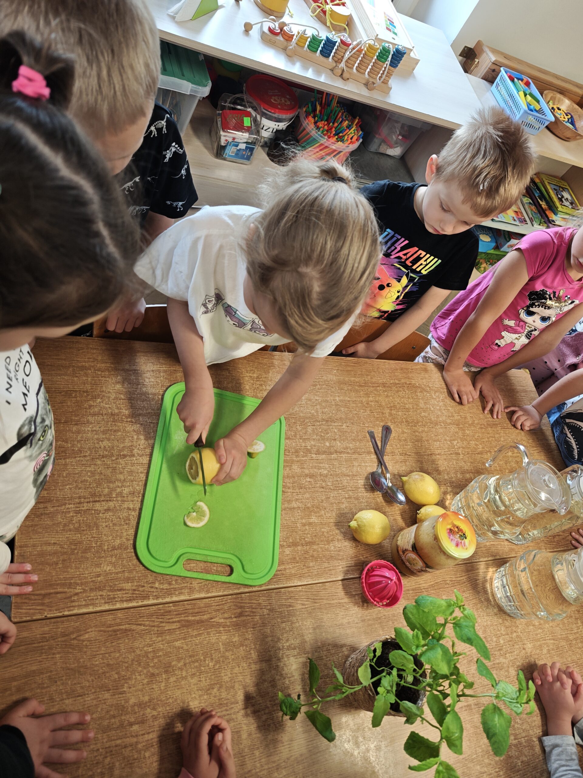 Na koniec tygodnia rozwijaliśmy umiejętności praktyczne poprzez samodzielne przygotowanie zdrowej lemoniady z uwzględnieniem zasad higieny, bezpieczeństwa i współpracy w grupie.