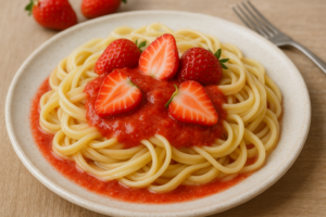 | Obiad | Makaron świderki z musem truskawkowo-jogurtowym. /1,7/ Kompot wiśniowy. |