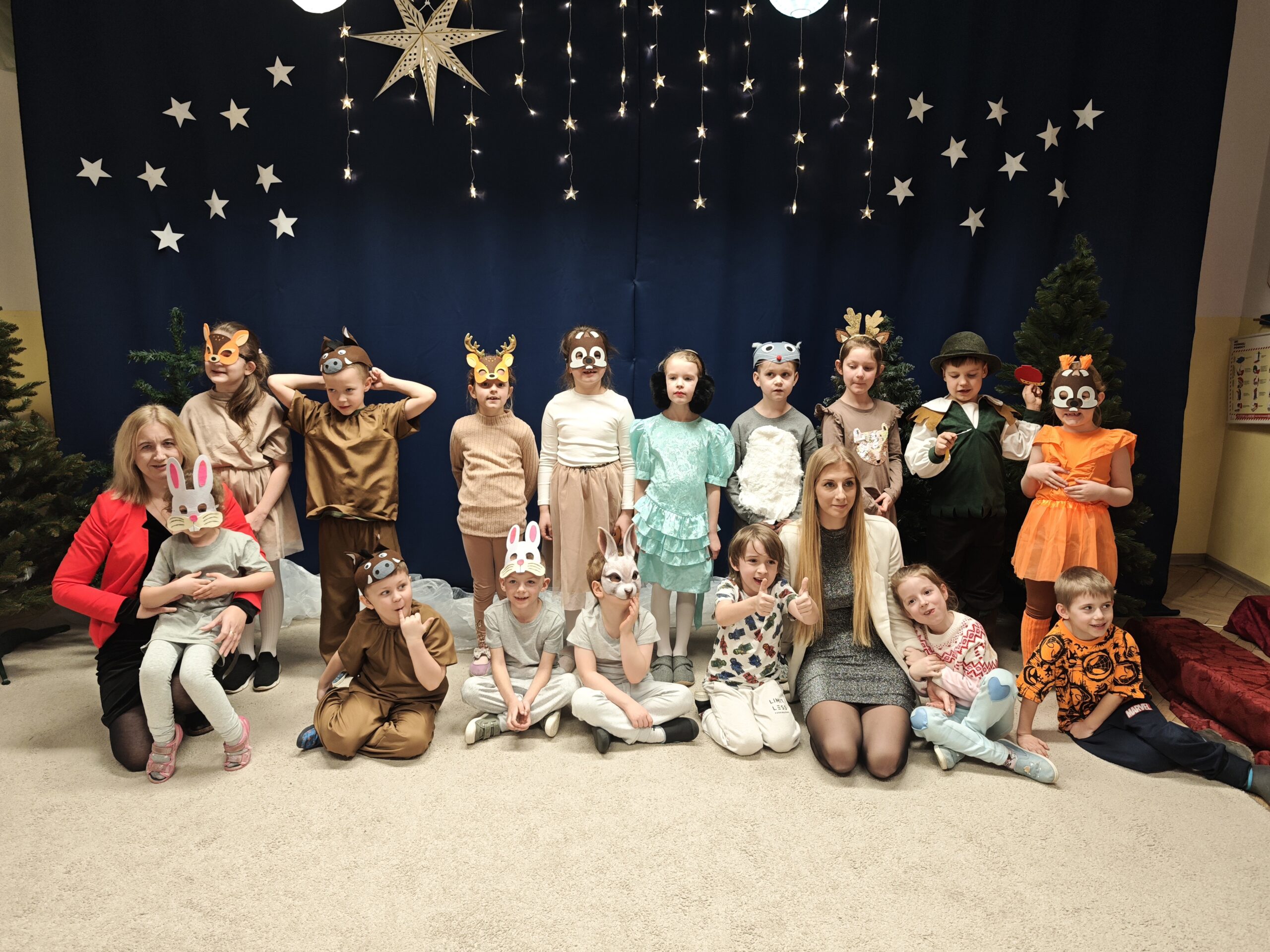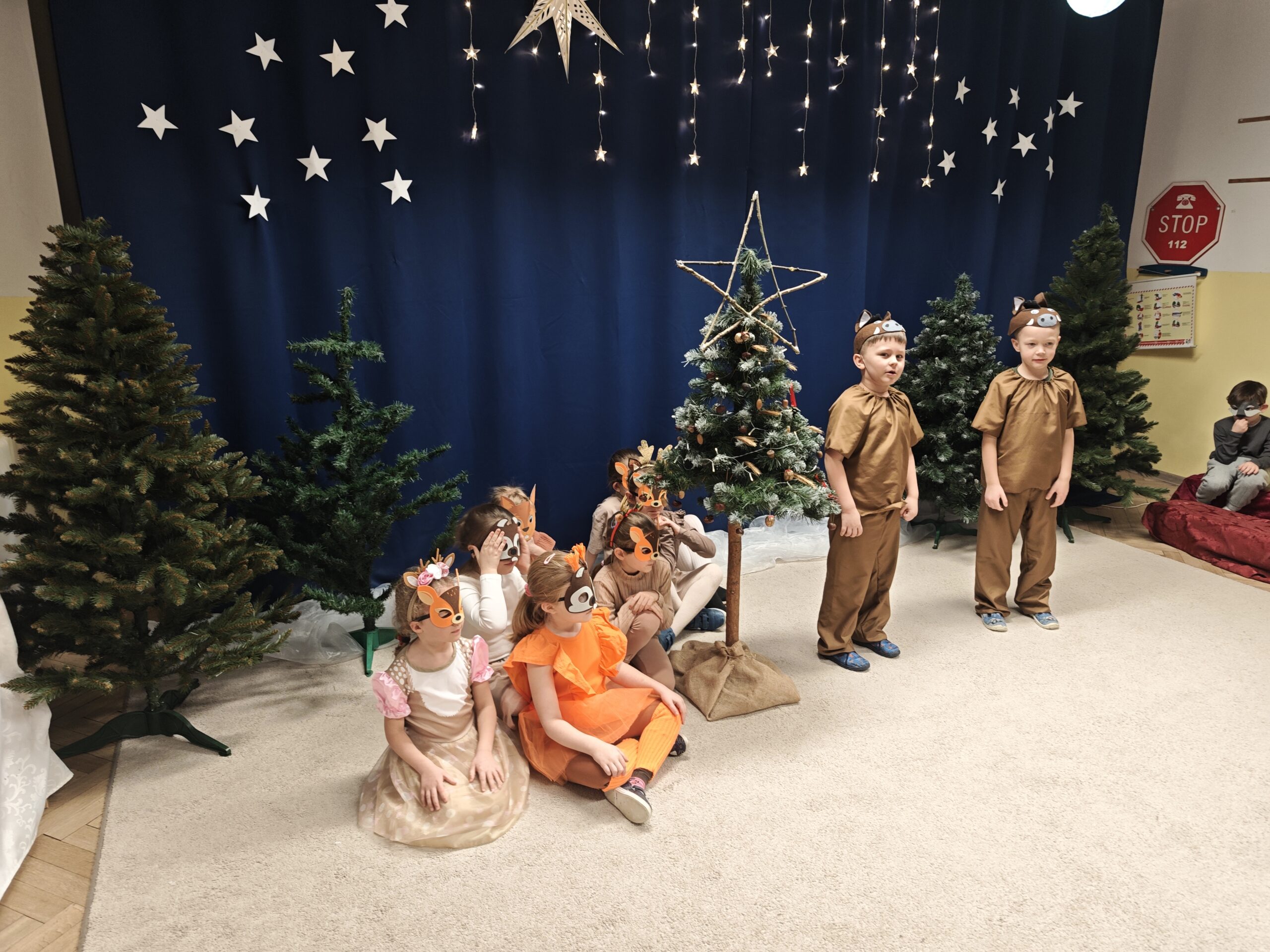 Mali artyści z ogromnym zaangażowaniem wcielili się w role leśnych zwierzątek, przenosząc wszystkich w magiczny, świąteczny świat pełen radości, życzliwości i wspólnego oczekiwania na Boże Narodzenie. 🎄✨