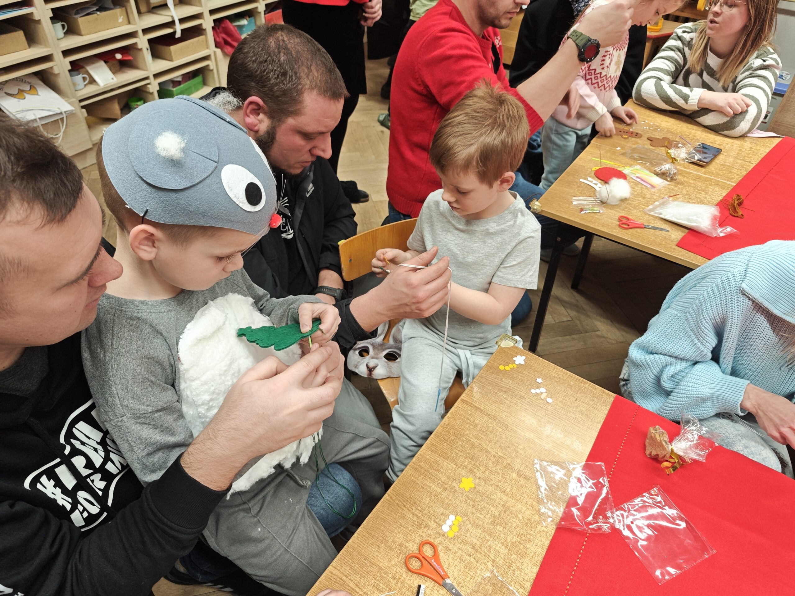 Po przedstawieniu przedszkolaki wraz z rodzicami wzięli udział w warsztatach, gdzie mogli uszyć świąteczne pluszaki ☺️