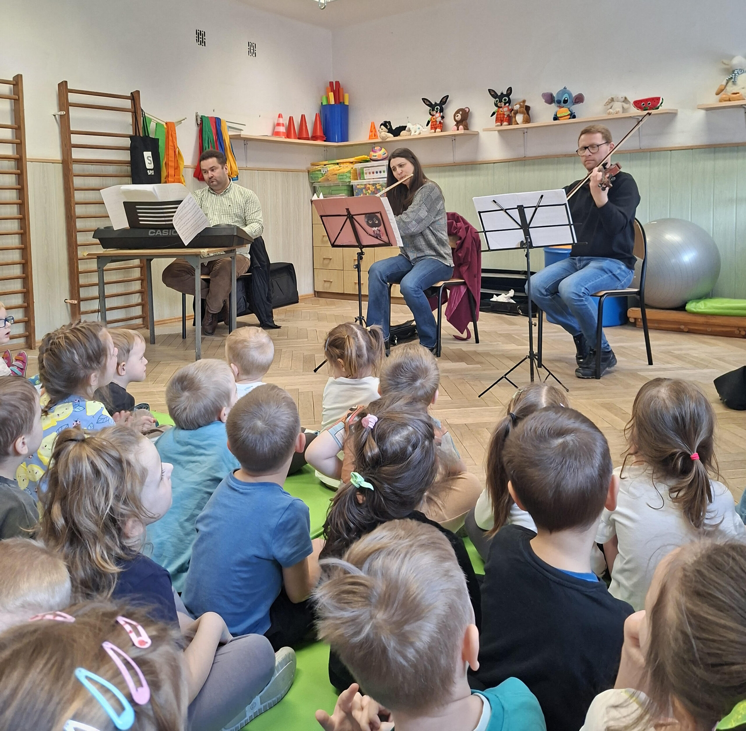 11 marca w naszym przedszkolu odbyły się wyjątkowe warsztaty dla dzieci i rodziców z grupy II oparte na Metodzie Ruchu Rozwijającego Weroniki Sherborne. Podczas zajęć dzieci razem z rodzicami wykonywały różne ćwiczenia ruchowe – turlanie, wspólne budowanie „mostów”, zabawy w parach oraz aktywności rozwijające świadomość własnego ciała i przestrzeni. Najważniejszym elementem była współpraca między dzieckiem a rodzicem. Dziękujemy rodzicom za aktywny udział, zaangażowanie i wspaniałą atmosferę. Mamy nadzieję, że to spotkanie było dla wszystkich inspiracją do wspólnych aktywności ruchowych także w domu.