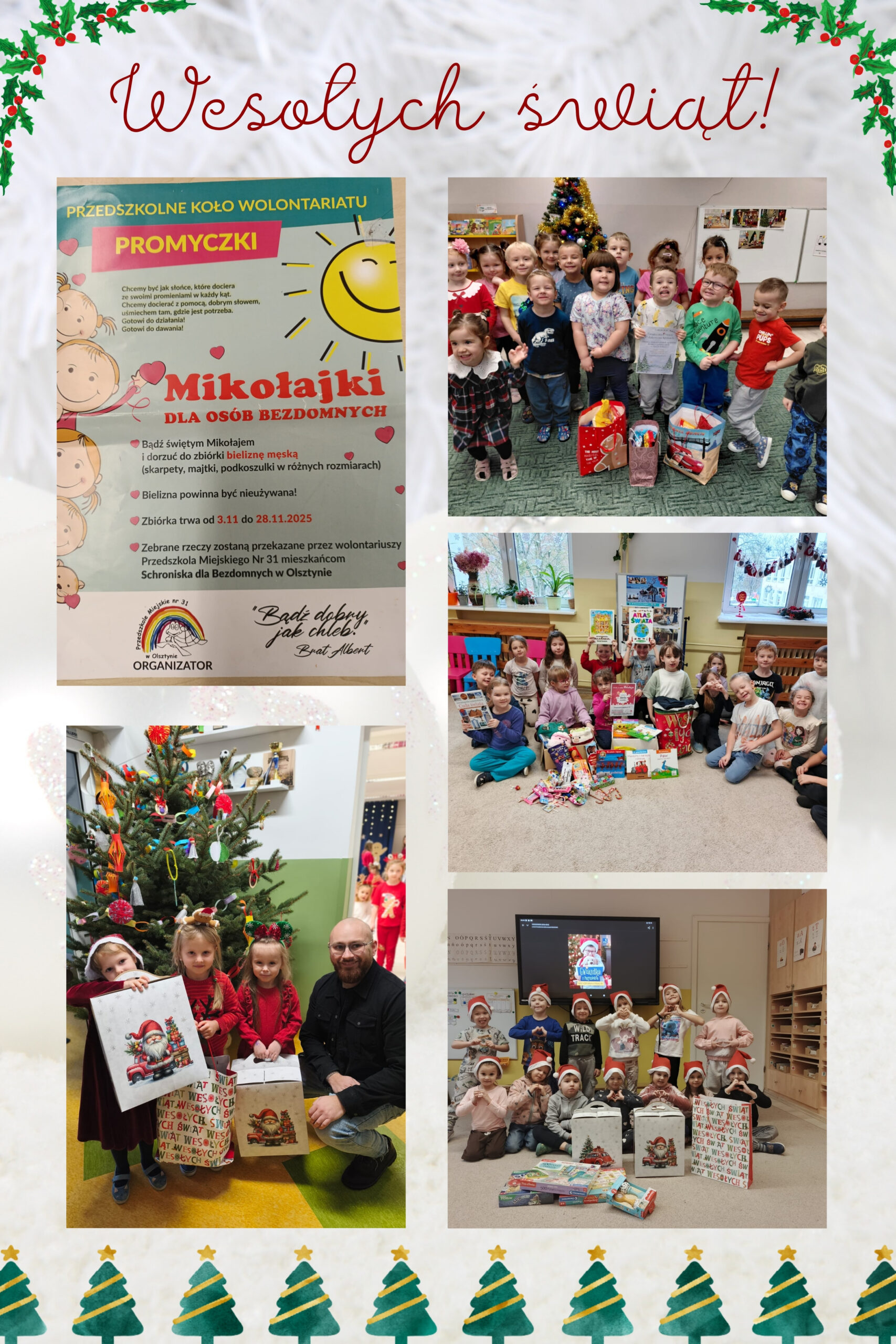 W tym wyjątkowym, przedświątecznym czasie w naszym przedszkolu odbyły się świąteczne akcje charytatywne, w których z radością i zaangażowaniem wzięły udział dzieci, rodzice oraz nauczyciele. 🎅🏻
